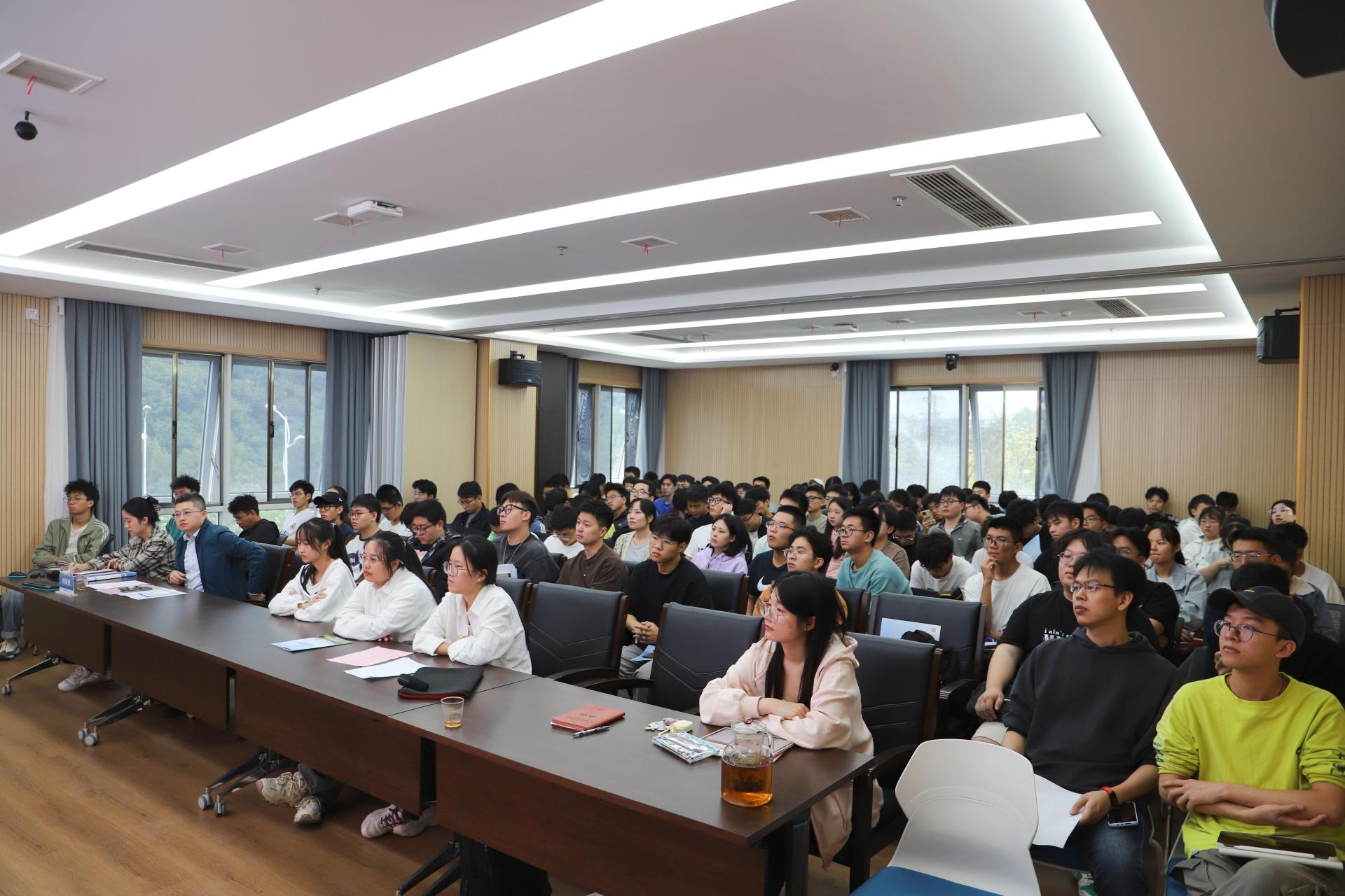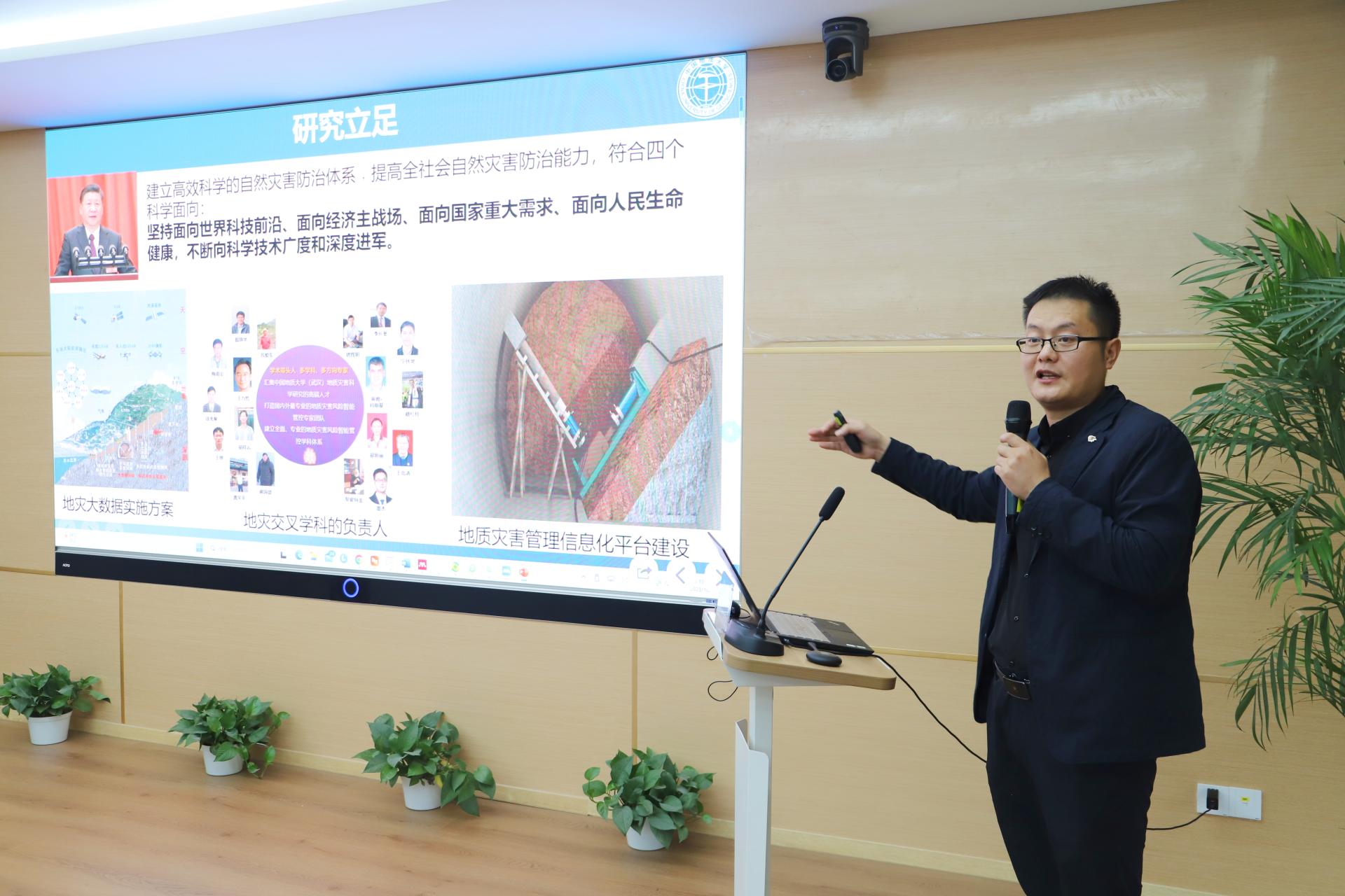 开幕式结束后,窦杰教授以《滑坡智能防灾减灾中的AI应用与趋势》为题,为全体师生作了本次论坛的第一期学术报告。老师从研究背景、研究意义、AI在滑坡灾害中运用领域以及滑坡灾害早期识别技术、滑坡灾害易发性评价和滑坡灾害监测预警等方面深入浅出的为同学们讲解了他的研究历程和主要内容。报告结束后,与会同学与窦老师进行了热烈的讨论。