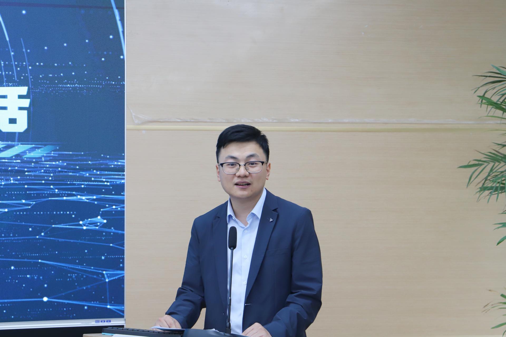 人工智能研究院副经理刘振焘博士发言,他指出未来技术前沿论坛是师生交流的窗口,是同学们学术成果集中展示,创新思想相互碰撞的平台。他希望全体员工一是要积极参与,主动交流,在交流互动中产生思想碰撞的火花。二是要学科交叉,各显神通,取长补短,积极探索学科交叉融合的魅力。三是要及时总结,再创辉煌,借助思想碰撞的火花,不断完善自己的研究工作,储备未来研究的新思路,力争突破所在学科领域的瓶颈问题。