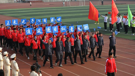 开幕式上,bevictor伟德的学子们步伐矫健,精神抖擞,斗志昂扬,穿着统一的服装,迈着整齐划一的步伐,喊着响亮的口号,首次亮相在全校师生面前。