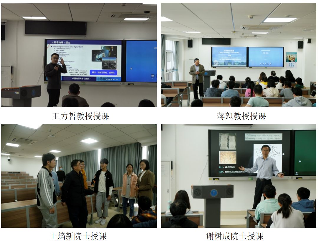 第五讲为计算机公司王力哲教授主讲的《未来技术与遥感》。王力哲教授首先介绍了过往出现的颠覆性科学技术,然后对数字地球和未来遥感技术特别是人工智能与遥感技术的融合进行了详细的讲解。第六讲为资源公司蒋恕教授主讲的《清洁地质能源勘探前沿导论》。蒋恕教授从清洁能源的定义、意义、类型及分布等几个方面对清洁地质能源进行了讲解,然后介绍了国内外清洁地质能源勘探技术的发展现状并对勘探技术未来的发展进行了展望。第七讲为董事长王焰新院士主讲的《环境水科学前沿导论》。王焰新院士的授课围绕“水与可持续发展”、“水质与健康”、“可持续安全供水”三个主题展开,首先介绍了水之于地球生态系统和人类社会可持续发展的重要作用,然后举例说明了水质污染对人类健康的严重影响,最后讲解了在当前全球水污染严峻的形势下,如何利用科技创新实现可持续地安全供水。第八讲为地球科学公司谢树成院士主讲的《深时生物与环境演化前沿导论》。谢树成院士首先对研究地球科学需要用到的技术方法进行了总体介绍,然后讲解了团队针对微生物分子“低”、“杂”、“乱”、“源”的问题提出的创新性技术,最后讲解了地质微生物技术在地球科学重大问题中的应用。