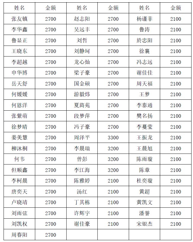根据本科生院《关于开展2023年国家奖助学金评选工作的通知》要求,依据国家助学金评选办法,国家助学金金额每生每年在2000元至4500元范围内确定,不可分档超过4档,不可突破上下限额。本着以员工为本,资助优先的原则,综合员工困难生认定等级,公司奖助学金评审委员会将资助金额在原评定资助标准上进行了适当调整。特殊困难认定员工给予每人3200元资助,困难认定员工给予每人2700元资助,一般困难认定员工给予每人2100元资助。