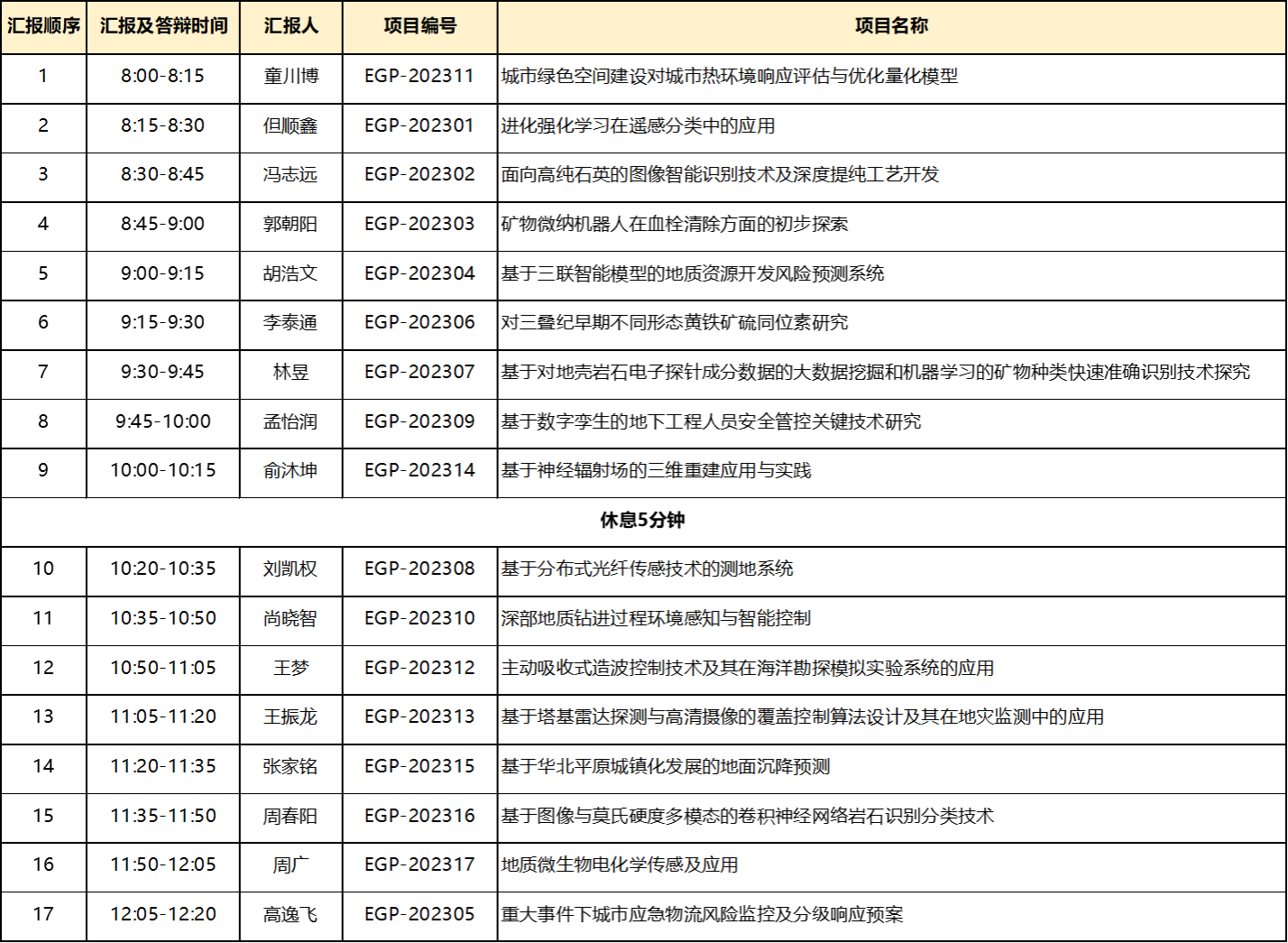 报告安排: